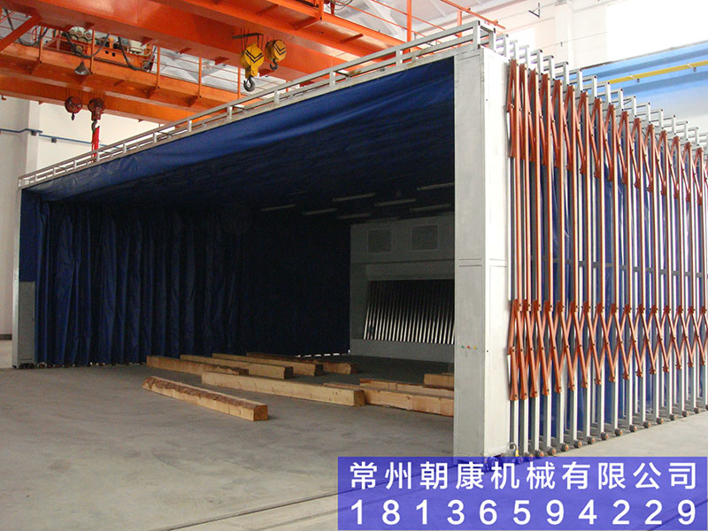 新鲜空气由喷漆室正面吸入喷漆作业区,喷漆时气流均匀地将工件包围,作业区断面风速为0.5-0.9m/s,使过喷的漆雾不致飞溅,喷漆车间形成负压状态,保证过喷漆雾不会飞散到喷漆室范围以外。过喷漆雾在负压的作用下吸入油膜漆雾净化机,先经过二道流动油膜的截附,少量的漆雾再经过油器分离器的分离后达到国家标准排放,漆雾祛除率可达95%。此时室体内的有害物质远远低于国家工业企业卫生标准。